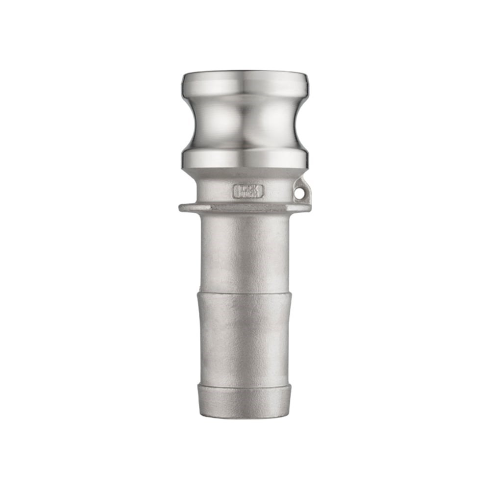 Камлок тип E выполнен из стали марки AISI 304. Изделие представляет собой ответную часть (ниппель "папа") кулачкового соединения Camlock с "елочкой" (хвостовиком) под рукав. Удобство использования камлоков обеспечивается кулачковым принципом соединения, что позволяет создать необходимую связку в кратчайшие сроки, без приложения излишних физических усилий.