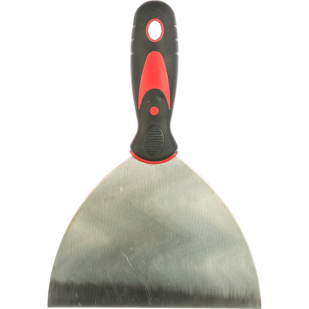 Шпатель применяется для нанесения строительных растворов на широкий шпатель, заделки небольших трещин и швов, а также демонтажа старых покрытий. Материал полотна: нержавеющая сталь; Материал ручки: двухкомпонентный; Отверстие для подвешивания: есть; Ширина: 150 мм.
