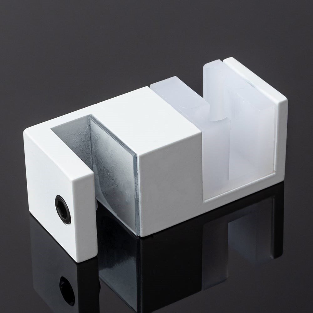 Нижняя направляющая применяется в раздвижных душевых кабинах из каленого стекла.