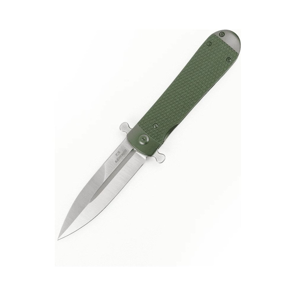 Нож Adimanti Samson by Ganzo Samson-GR – уникальный инструмент с редкой формой клинка Spear-Point, которая выделяется агрессивно острым кончиком и фальшлезвием в верхней части. Эта складная модель ориентирована на любителей практичных ножей с оригинальным дизайном и имеет расширенные возможности с упором на силовую работу. Изделие рассчитано на использование как в городских, так и полевых условиях, поскольку оно имеет компактные габариты для комфортного ношения в кармане и обладает высокой стойкостью к воздействию агрессивных сред, в особенности ряда кислот и обычной влаги. Материалом клинка служит инструментальная сталь D2, которая имеет достойные показатели прочности и эффективности реза. Сталь D2 относится к нержавеющему типу и ценится за стойкость к образованию деформаций и мелких сколов на режущей кромке. Клинок надежно запирается в открытом и закрытом положениях. Рукоять инструмента имеет стальную основу с двумя текстурированными накладками из G10 – прочного стеклотекстолита, который высоко ценится за свою стойкость к ударам и механическим повреждениям.