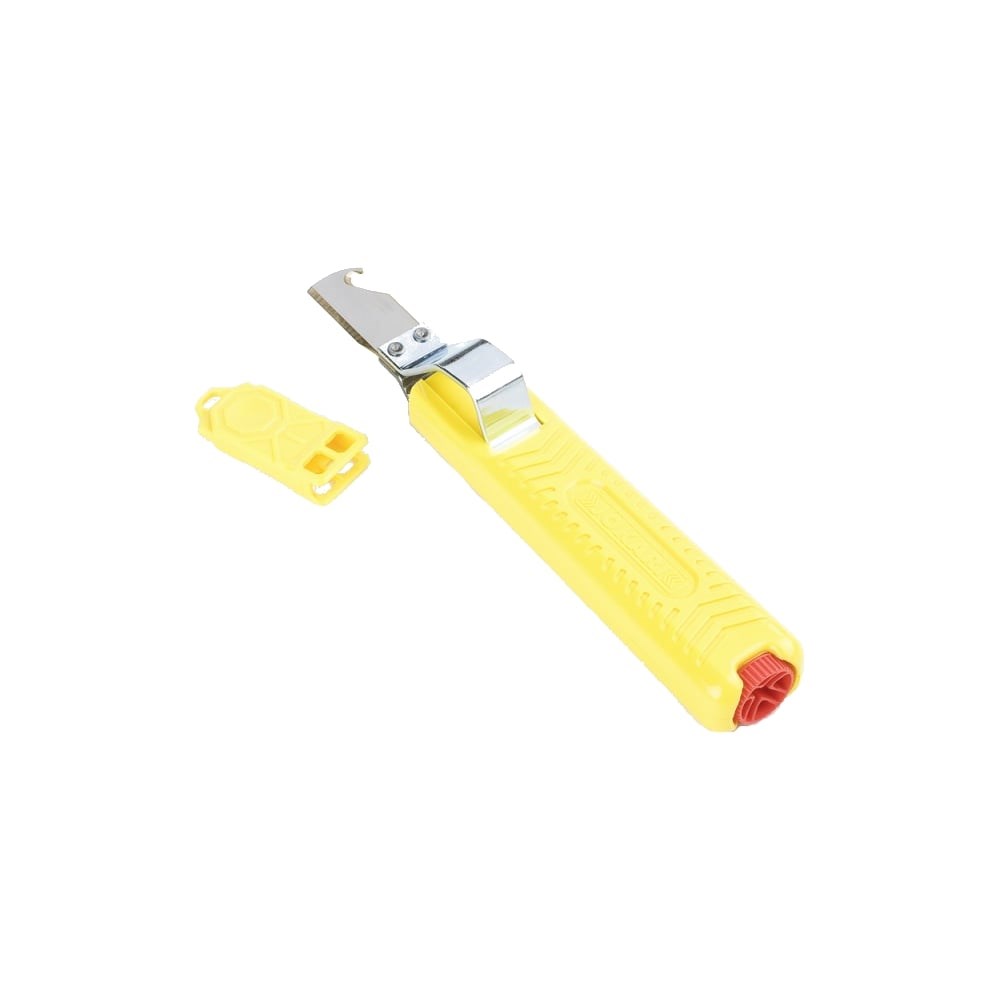 Нож для разделки кабеля Jokari Standard No. 28H JK 10282 имеет простую регулировку глубины реза - при помощи поворота винта, располженного в основании рукояти. Корпус инструмента изготовлен из качественного высокопрочного полиамида, с отличными изолирующими свойствами. Изделие рекомендуется для удаления оболочки с круглых кабелей диаметром от 8 до 28 мм.