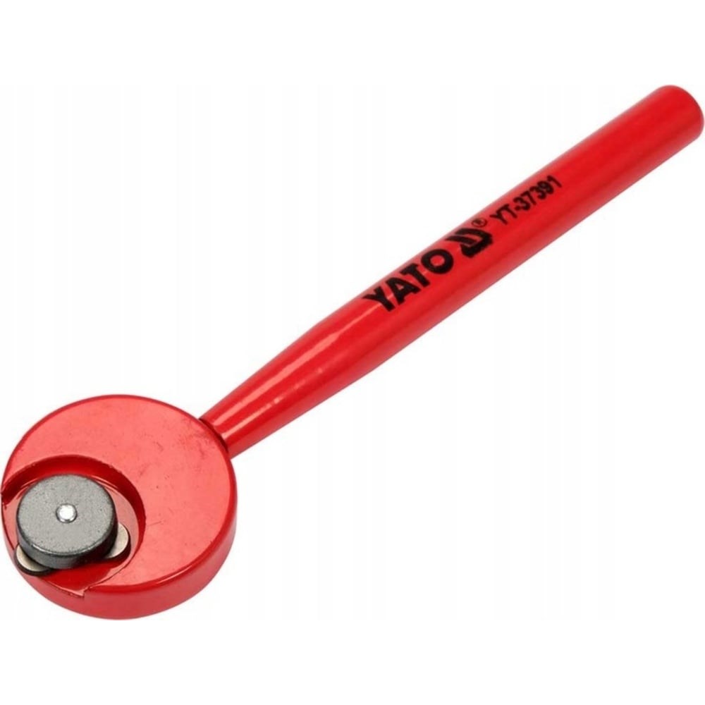 Нож для резки стекла, корпус из металла.В головке установлена подвижная розетка с тремя регулируемыми режущими кругами из карбида YG6X. Фиксация установки с помощью винта. Общая длина ножа составляет 130 мм. Поверхность защищена лаком.