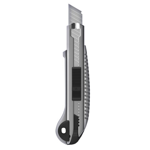 Благодаря своей обтекаемой форме нож удобно держать в руке. Пластиковый корпус гарантирует безопасность применения. Автофиксатор позволяет закрепить лезвие в нужном положении с помощью защелки. Для того, чтобы хранить и переносить инструмент было проще, в корпусе имеется небольшое отверстие. Нож усиленный с металлическими направляющими, которые надежно удерживают лезвие шириной 18 мм и позволяют выдерживать большую нагрузку.