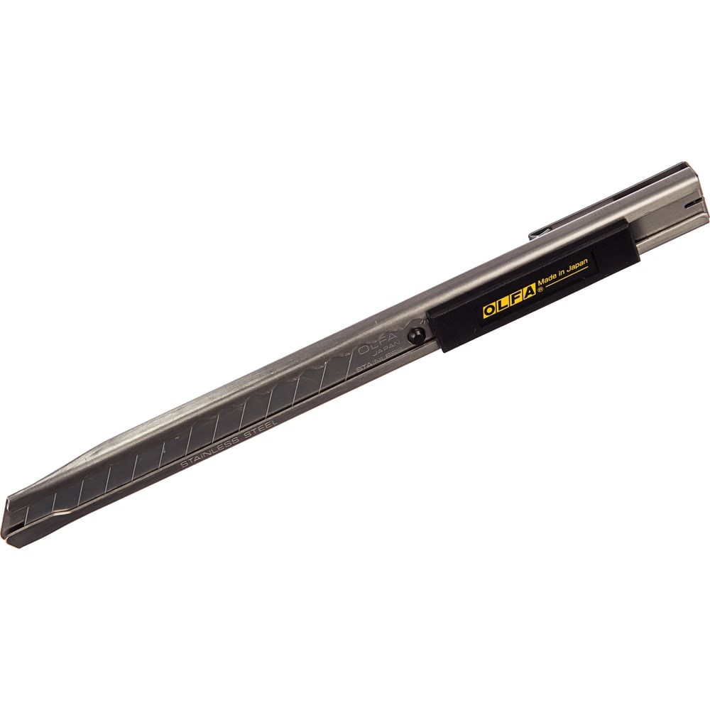 Нож OLFA 9 мм OL-SVR-1 полностью изготовлен из нержавеющей стали, что обеспечивает долгий срок службы и возможность использования инструмента для работы во влажной среде. Нож оснащен полуавтоматическим механизмом фиксации лезвия.