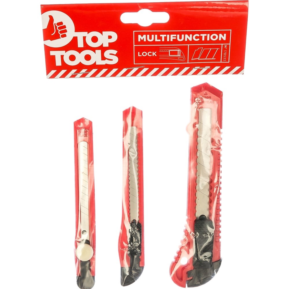 Ножи, набор 3 шт Top Tools 17B533 представляют собой комплект для резки различных по толщине материалов. Благодаря различной ширине полотен легко разрезать как по прямой линии, так и по более сложному контуру. Удобные рукоятки не скользят в ладонях, предоставляя оптимальный хват.