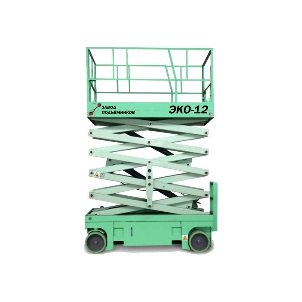 Ножничный аккумуляторный подъемник Завод подъемников ЭКО12 00-000007 - самоходный ножничный подъемник с рабочей высотой 12 метров, высота поднятия пола платформы 10 метров. Подъемники производятся в России, свой склад запчастей, собственная сервисная служба. Подъемники предназначены для работ в помещении, а так же на улице в безветренную погоду. Подъемник заряжается от обычной бытовой розетки 220 В, полный цикл зарядки 9-12 часов. Имеет необслуживаемые гелевые аккумуляторные батареи высокой ёмкости. Работает только на ровных поверхностях с уклоном до 2 градусов. Не предназначен для проведения пескоструйных работ.