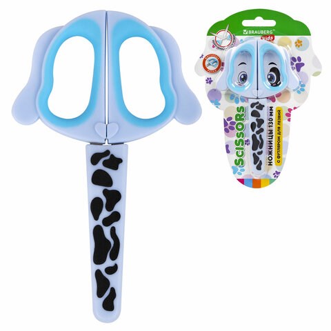 Ножницы 130 мм, фигурные рукоятки с резиновыми вставками "Далматин", с чехлом, BRAUBERG KIDS, 238352