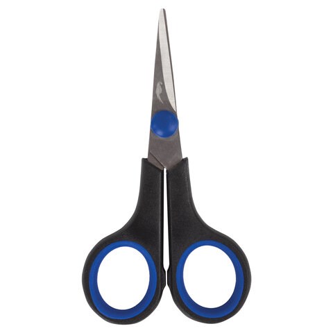 Симметричные ручки из пластика с резиновыми вставками предотвращают скольжение пальцев и обеспечивают надежный захват. Особо острые лезвия из нержавеющей стали легко разрезают материал, не заминая края, а специальная трехсторонняя заточка позволяет сохранить остроту лезвий даже при интенсивной эксплуатации. Прекрасно подходят для вырезания мелких деталей. Длина ножниц составляет 120 мм.