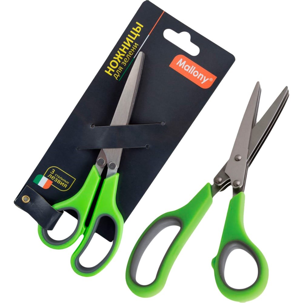 Ножницы для зелени Mallony KS-03 3 лезвия 19 см нержавеющая сталь 920101. 3 лезвия толщина стали 1,00 мм Особая конструкция из трех параллельных рядов лезвий позволяет быстро нарезать зелень. Материал: нерж сталь, пластик Упаковка: полиэтил пакет + картонный подвес