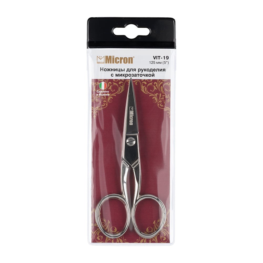 Ножницы Micron VIT-19 для рукоделия, в чехле, 125 мм, с микрозаточкой 571162 имеют усиленную конструкцию и специальную заточку, что позволяет с меньшими усилиями разрезать плотные и тверды материалы: кожу, фетр, пластик, резину и др. Эргономичная форма ручек обеспечивает комфортный хват.