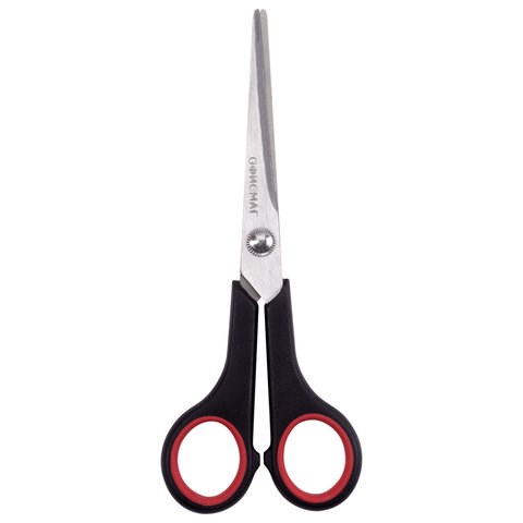 Ножницы ОФИСМАГ "Soft Grip", 165 мм, резиновые вставки, черно-красные, 3-х стороняя заточка, 236455