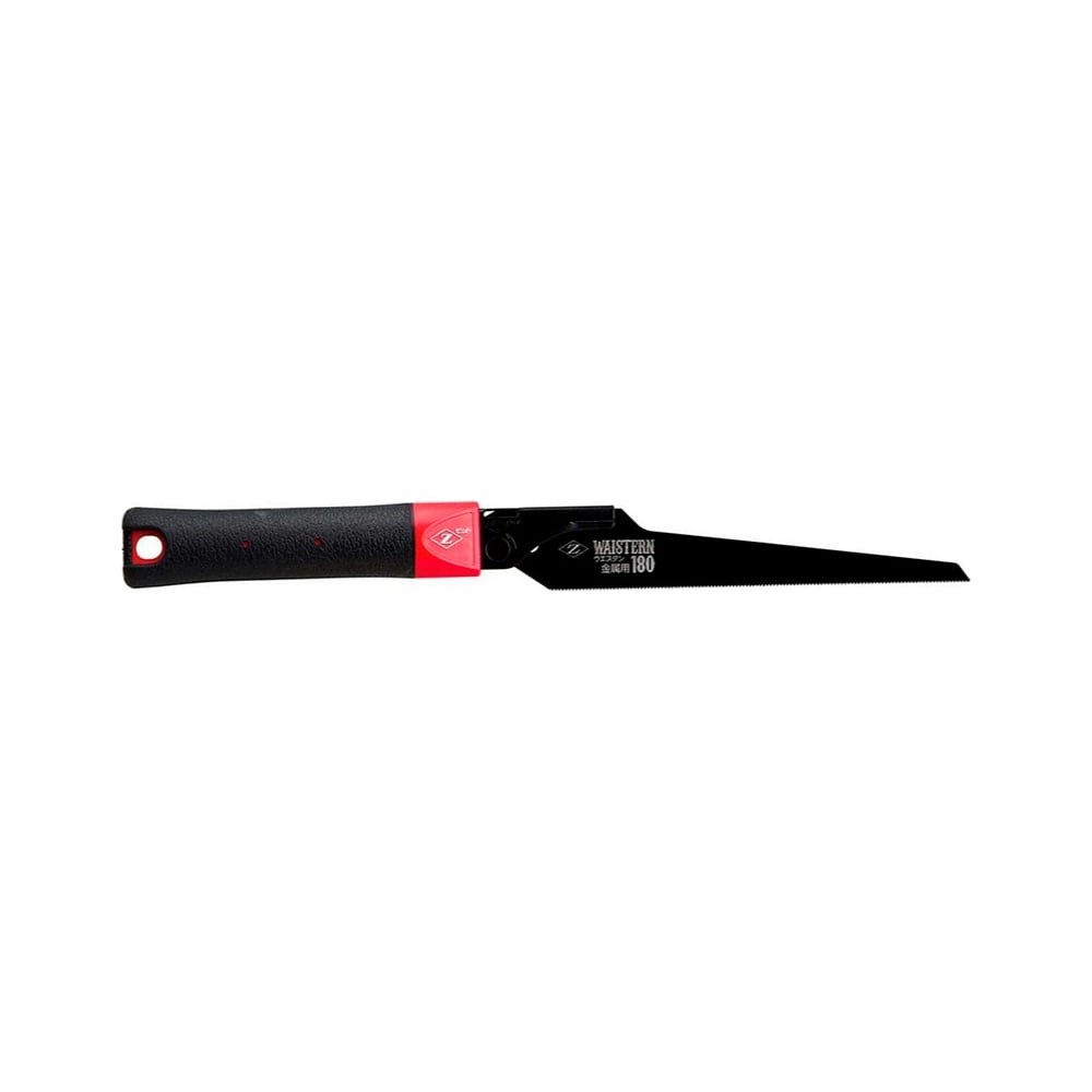 Пила Waistern180 Iron Gutter Saw ZETSAW по металлу • компактная японская пила в ножнах Waistern180 Iron Gutter идеально подходит для резки медных, железных, алюминиевых, свинцовых, латунных желобов, труб, рам и т.д.• эта японская пила также подойдет для резки сайдинга и труб ПВХ • пила Waistern180 Iron Gutter имеет зубья с импульсной закалкой, которые обеспечивают равномерную резку в течение всего срока службы полотна • лезвие изготовлено из высокоуглеродистой стали, покрытой чёрным напылением • эргономичная нескользящая пластиковая рукоять заключена в мягкий пластик, поэтому пила не будет холодной на ощупь даже при низких температурах• рукоять, с отверстием для крепления или подвеса, расширяется на заднем конце для лучшего захвата, защиты от скольжения и меньшей утомляемости при работе • пилу можно снимать одной рукой и легко маневрировать, не ослабляя ремень, при этом ножны не касаются пола даже в низком положении работающего