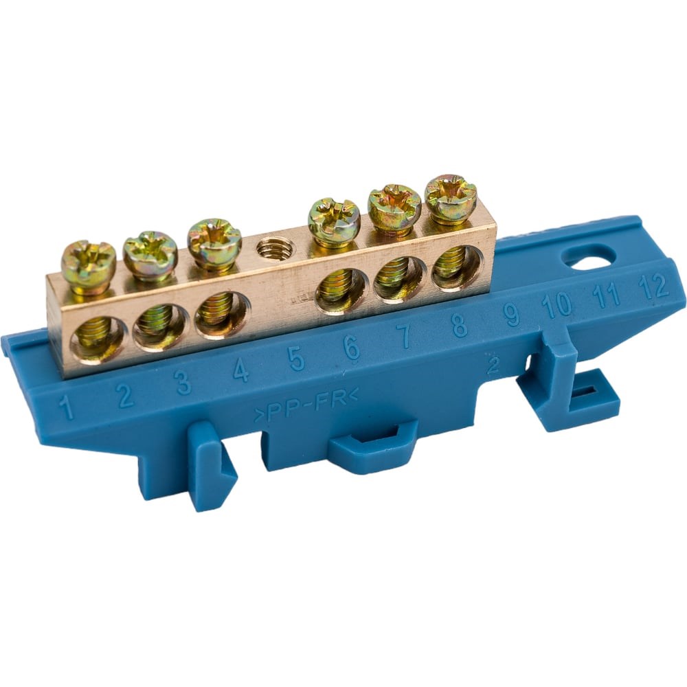 Нулевая N шина c изолятором ЮПИТЕР на DIN-рейку 6x9мм 6 групп большая стойка JP7209-01