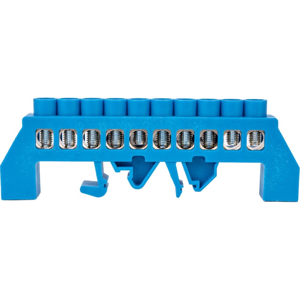 Нулевая N шина в комбинированном синем изоляторе на DIN-рейку REXANT 8x12 мм 10 групп 11-2316 предназначена для электрического и механического соединения нулевых, защитных и фазных проводников. Выполнена из латунной шины, установленной в изолятор, изготовленный из самозатухающего пластика. Номинальное напряжение: 450 В. Максимальное поперечное сечение проводника: 25 мм2. Температура эксплуатации: -40...+50 °C. Среднее значение относительной влажности эксплуатации не более 90%.