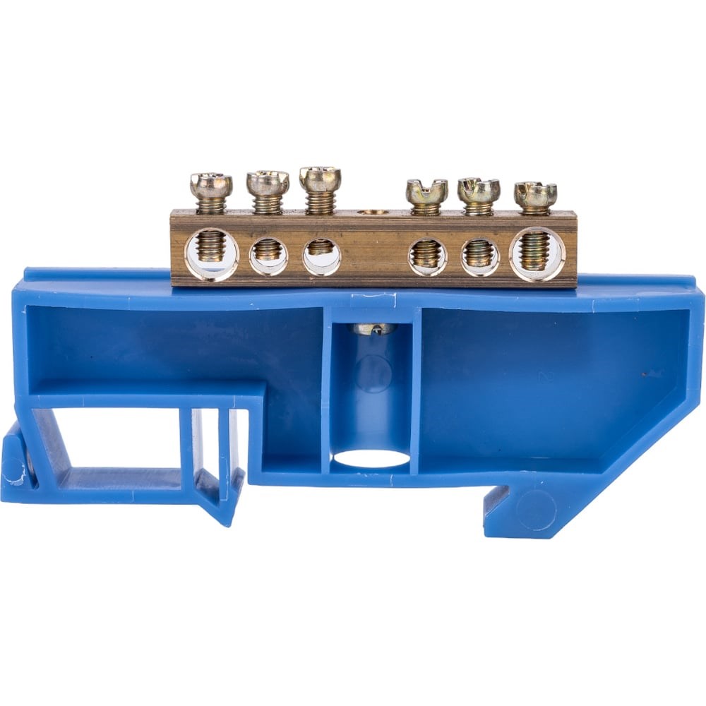 Нулевая N шина с синим изолятором на DIN-рейку REXANT 6x9 мм стойка большая 6 групп 11-2339 предназначена для электрического и механического соединения нулевых, защитных и фазных проводников. Выполнена из латунной шины, установленной на пластиковый изолятор, изготовленный из самозатухающего пластика. Номинальное напряжение: 450 В. Максимальное поперечное сечение проводника: 16 мм2. Температура эксплуатации: -40...+50 °C. Среднее значение относительной влажности эксплуатации не более 90%.