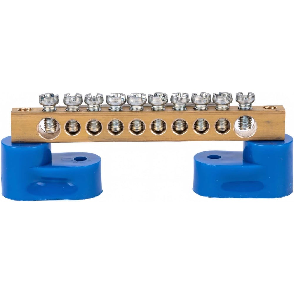 Нулевая N шина на двух угловых синих изоляторах REXANT 6х9 мм 10 групп 11-2327 предназначена для электрического и механического соединения нулевых, защитных и фазных проводников. Выполнена из латунной шины, установленной на пластиковые изоляторы, изготовленные из самозатухающего пластика. Номинальное напряжение: 450 В Максимальное поперечное сечение проводника: 16 мм2. Температура эксплуатации: от -40 до +50 °C. Среднее значение относительной влажности эксплуатации не более 90%.