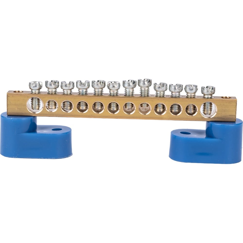 Нулевая N шина на двух угловых синих изоляторах REXANT 6х9 мм 12 групп 11-2328 предназначена для электрического и механического соединения нулевых, защитных и фазных проводников. Выполнена из латунной шины, установленной на пластиковые изоляторы, изготовленные из самозатухающего пластика. Номинальное напряжение: 450 В Максимальное поперечное сечение проводника: 16 мм2. Температура эксплуатации: от -40 до +50 °C. Среднее значение относительной влажности эксплуатации не более 90%.