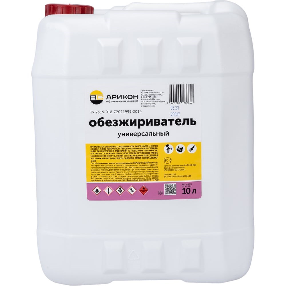 Обезжириватель АРИКОН канистра 10 л OBE10, применяемый для очистки и обезжиривания поверхностей деталей на всех этапах кузовного ремонта.Пригоден для обезжиривания старых лакокрасочных покрытий, включая разные стали, оцинкованной стали, алюминия, загрунтованных и шпатлеванных поверхностей.Используется в ответственных процессах обезжиривания и мойки деталей, узлов и агрегатов перед закаливанием и нанесением гальванопокрытий, перед окраской любой поверхности, поскольку не оставляет при испарении пленки из нерастворимых компонентов (жиров, масел).Также используется для очистки тканей и кожи.С легкостью удаляет масляные, битумные, силиконовые, восковые загрязнения.