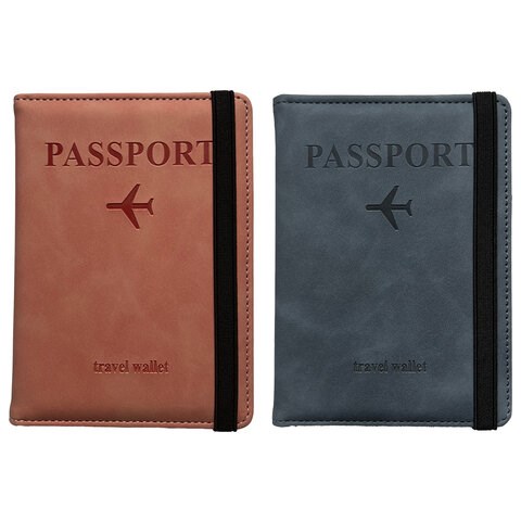 Модели выполнены из экокожи темно-голубого и розового цветов c приятной "soft touch" поверхностью и украшены тиснением в виде надписи "Passport", "travel wallet" и фигуры самолета.