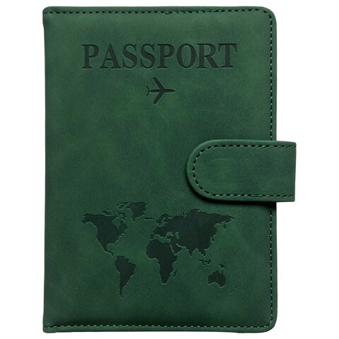 Модель выполнена из экокожи зеленого цвета c приятной "soft touch" поверхностью и украшена тиснением в виде надписи "Passport", фигуры самолета и карты мира.