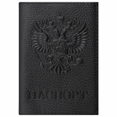 Обложка для паспорта натуральная кожа флоттер, "Герб", черная, BRAUBERG, 237198