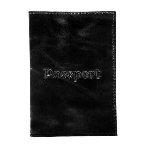 Модель выполнена из натуральной кожи "пулап" чёрного цвета, что подчеркнет стиль и изысканный вкус обладателя. Украшена тиснением "Passport", края прострочены. На внутреннем развороте расположены: с левой стороны - кожаный карман с отделениями для пластиковых карт, с правой стороны - карман из прозрачного пластика. Благодаря компактным размерам 97х138 мм удобно всегда носить с собой. Упакована в пакет с европодвесом.
