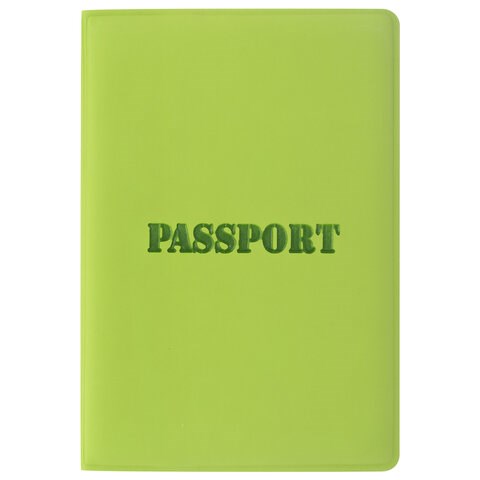 Модель выполнена из мягкого полиуретана яркого cалатового цвета, украшена тисненой надписью "Паспорт". На внутреннем развороте расположены два кармана из прозрачного пластика. Благодаря компактным размерам 97х138 мм удобно всегда носить с собой.