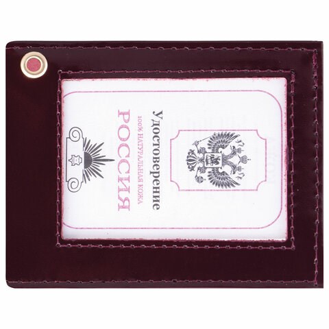 Обложка для удостоверения натуральная кожа шик гладкий, с окном, темно-бордовая, STAFF "Profit", 237193