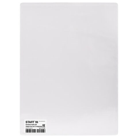 Обложка-файл для свидетельства о рождении, 190х260 мм, ПВХ, прозрачная, STAFF, 237584