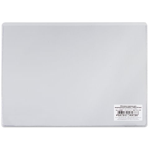 Обложка-карман для медицинского полиса, 220х160 мм, ПВХ 300 мкм, прозрачная, ДПС, 3151.300