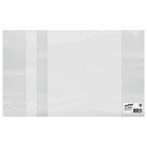 Обложка ПВХ со штрихкодом для тетрадей и дневников, С ЗАКЛАДКОЙ, ПЛОТНАЯ, 110 мкм, 210х350 мм, прозрачная, ЮНЛАНДИЯ, 229307