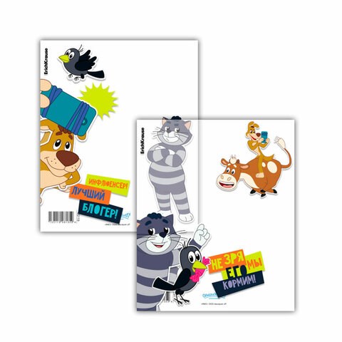 Обложки ПП для тетрадей и дневников ERICH KRAUSE "Простоквашино", КОМПЛЕКТ 12 шт., 80 мкм, 212х347 мм, 61123