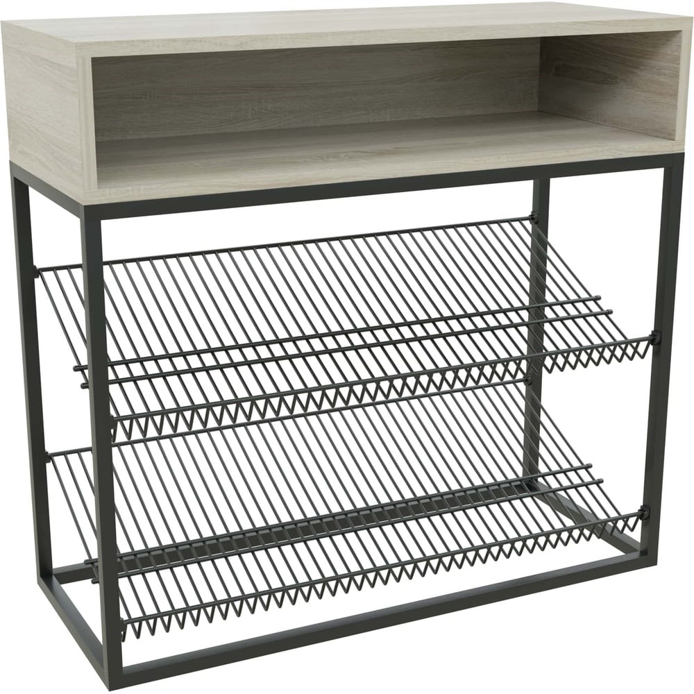 Обувница в прихожую НАЙДИ 800, черный муар, ЛДСП дуб сонома LO800-553025 имеет каркас из алюминиевого профиля с полимерно-порошковым покрытием. Ящик-полка изготовлен из ЛДСП. Полки под обувь изготовлены из прочной стальной проволоки. Изделие упаковано в коробку в разобранном виде. Рекомендуется собирать по инструкции с помощью молотка с резиновым наконечником.