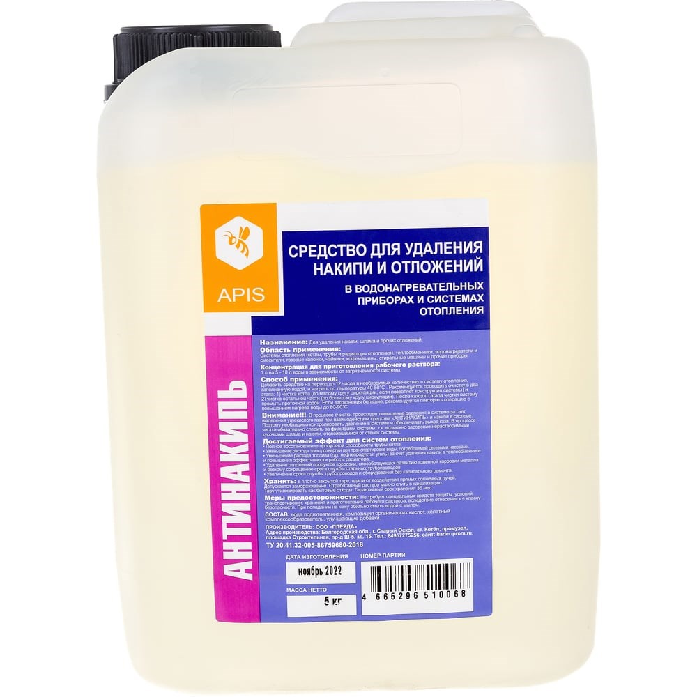 Очищающее средство для систем отопления APIS АНТИНАКИПЬ канистра 5 кг 4665296512451 удаляет накипь, шлам и прочие отложения в водонагревательных приборах и системах отопления. Не разъедает резину и пластик, за счет чего безопасно в использовании. Увеличивает срок службы оборудования, поэтому отличается практичностью. Средство имеет экономичный расход, благодаря чему его хватит на долгое время.