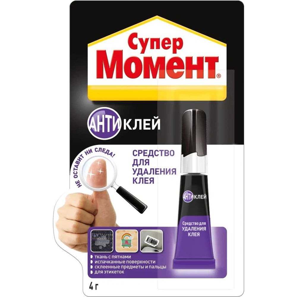 СУПЕР АНТИКЛЕЙ Момент на основе этицианакрилата имеет гелевую консистенцию, легко наносится и не растекается. Его применяют для удаления секундного клея, клея ПВА, контактных клеев на основе полиуретана, а также следов от клеевых этикеток, пятен чернил и маркера. Необходимо хранить при температуре от +8ºС до +28ºС. Поставляется на блистер-карте. Срок годности — 24 месяца.