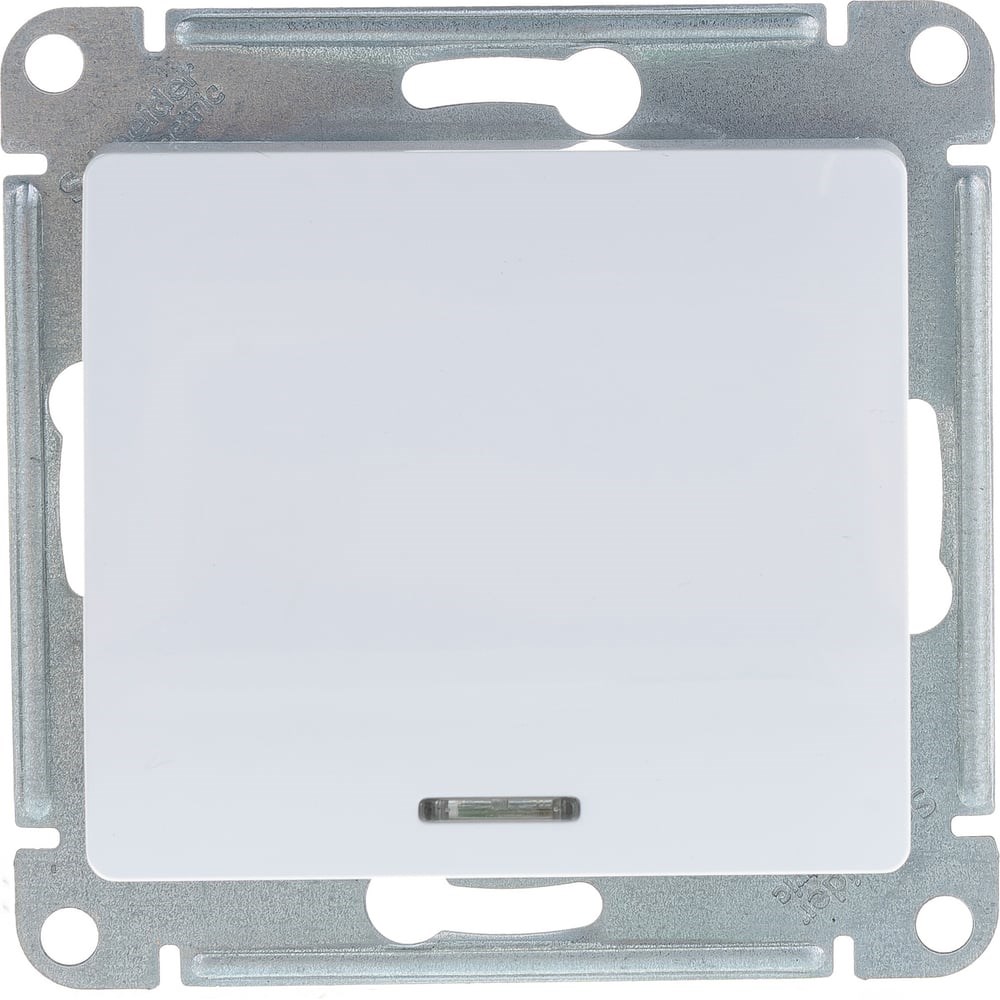 Механизм Systeme Electric (ранее Schneider Electric) серии Glossa (цвет белый) переключателя 1-клавишного с подсветкой.подходит для сетей 250 В, на ток 10 Аблагодаря современной светодиодной подсветке зеленого цвета изделие легко найти в темнотепереключатель позволяют управлять одним источником света с двух точеквыполнен из материала PС+ASA, стойкого к УФ-излучению и появлению царапинэргономичные клеммы расположены в два ряда: сверху и снизу