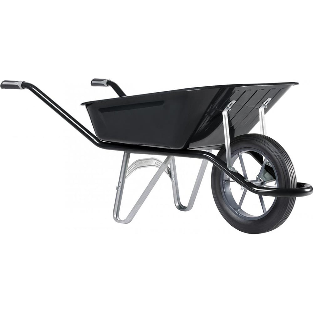 Тачка Haemmerlin CARGO EXELLIUM 100 MP P с окрашенным кузовом и литым колесом диаметром 400 мм — надежная, маневренная, устойчивая конструкция для перевозки на небольшие расстояния сыпучих. Штучных и жидких грузов. Вмещает в себя до 75 литров жидкости, до 100 литров сыпучего груза. Максимально допустимая нагрузка составляет 200 килограмм.Тачка Haemmerlin CARGO EXELLIUM 100 MP P пригодна для проведения тяжелых строительных работ. Высокопрочные закругленные борта усилены ребрами жесткости. Отбойник с передними упорами кузова формирует рама из окрашенной трубы диаметром 32 миллиметра. Ручки, за счет пластиковых накладок, не скользят, удобны в хвате.