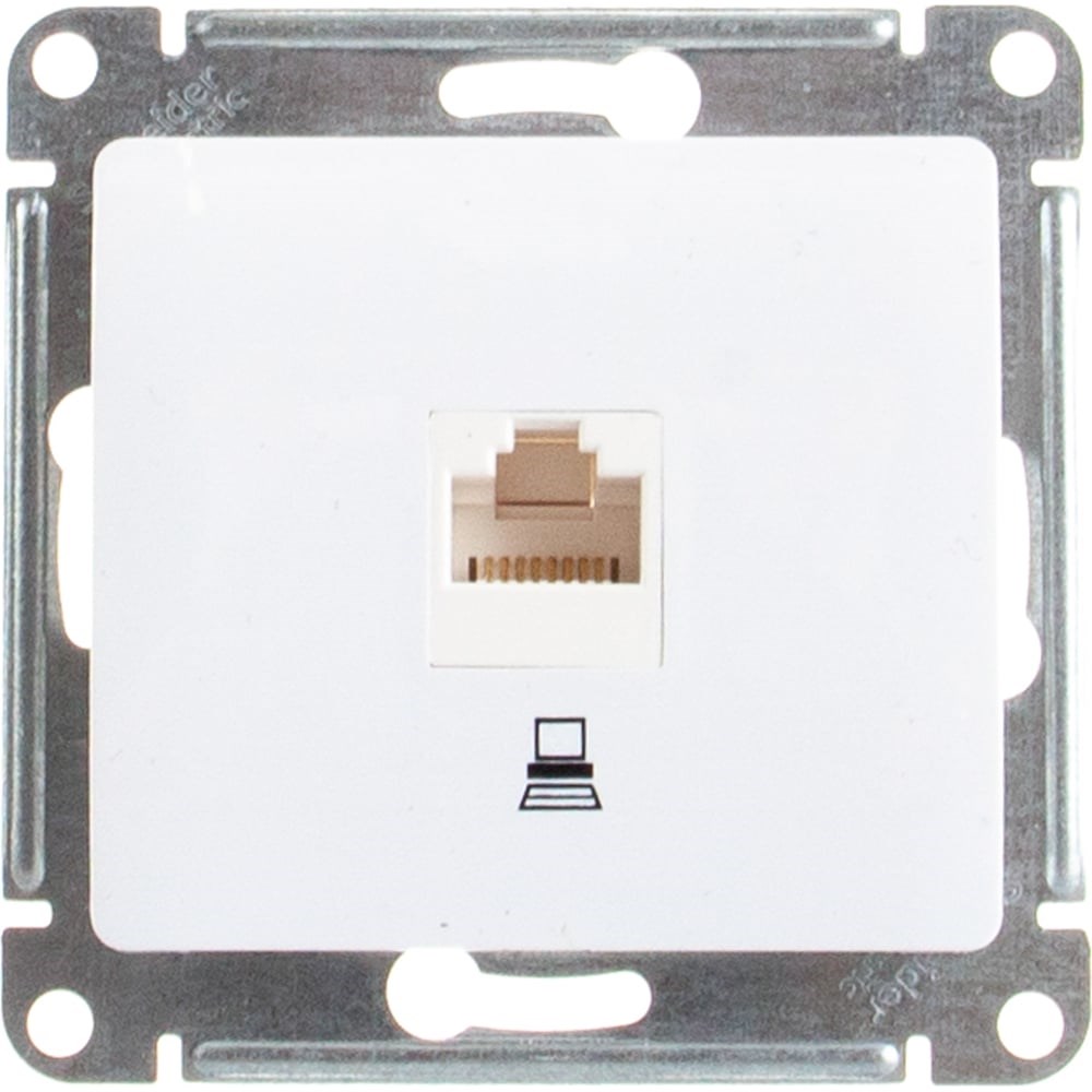 Механизм Systeme Electric (ранее Schneider Electric) серии Glossa (цвет белый) розетки компьютерной с разъёмом RJ45 категория 5е.предназначен для удобного и быстрого подключения вашего компьютера к компьютерной сетивыполнен из материала PС+ASA, стойкого к УФ-излучению и появлению царапин
