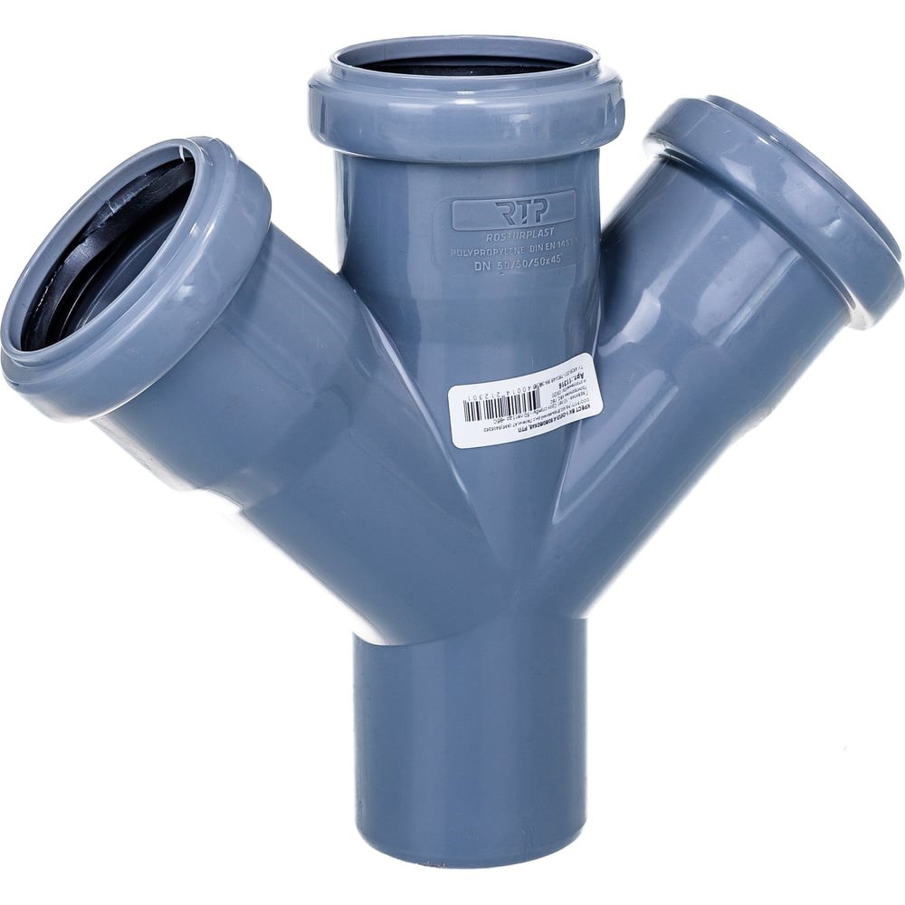 Канализационная одноплоскостная крестовина 50/50/50, 45 градусов, серый 36525