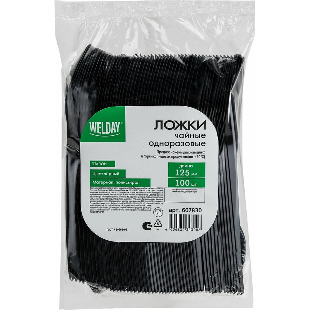 Одноразовые чайные ложки WELDAY используются в офисе, на предприятиях общественного питания, в дороге и быту.Приборы изготовлены из высококачественного пищевого полистирола черного цвета, поэтому они легкие и безопасные в использовании.Подойдут как для холодных, так и для горячих (до +70 °C) блюд.Длина - 125 мм.В комплекте 100 штук.