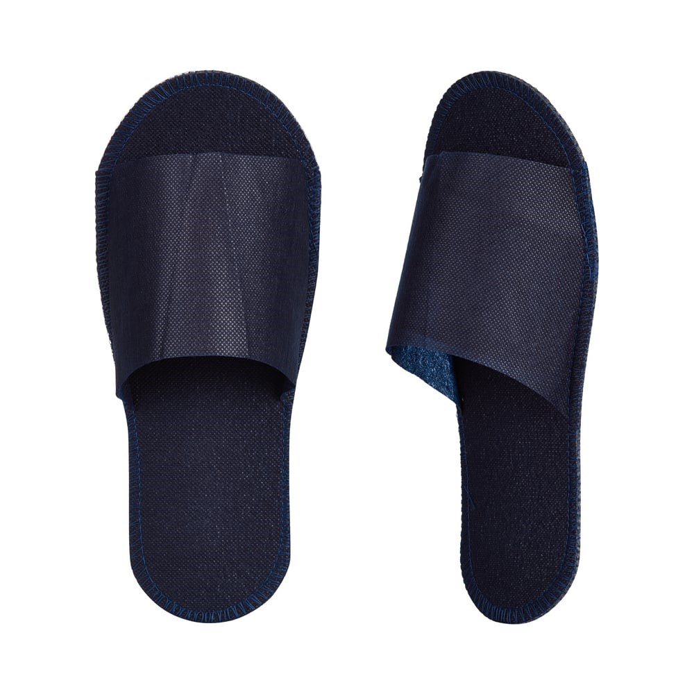 Одноразовые тапочки синего цвета с открытым мысом для гостиничных номеров, а также различных медицинских и косметологических учреждений. Верх из нетканого материала спанбонд плотностью 60 г/кв.м. Подошва: пенополиэтилен 4 мм. Прошивка: оверлок. Имеют универсальный размер: 38-42. Продаются упаковками по 150 пар.