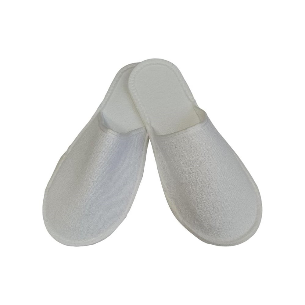 Одноразовые тапочки для гостиничных номеров, а также различных медицинских и косметологических учреждений. Верх из махровой ткани плотностью 160 г/кв.м, поролон в верхней части тапочка (мысе) - 3 мм, подкладка: спанбонд 30 г/кв.м. Подошва (слои снизу вверх): ЭВА толщиной 3.5 мм, махровая ткань 160 г/кв.м. Окантована бейкой - материал: спанбонд 30 г/кв.м. Универсальный размер: 38-42. Каждая пара упакована в свой полиэтиленовый пакет. Упаковка: 100 пар.
