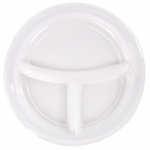 Одноразовые тарелки 3-х секционные КОМПЛЕКТ 100 шт. 220 мм, белые, ПП, холодное/горячее, LAIMA СТАНДАРТ, 608769
