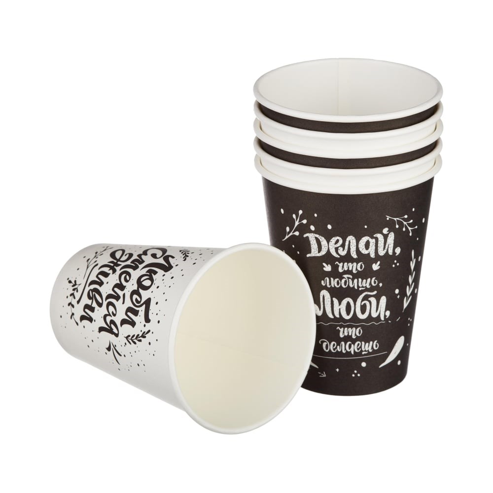 Одноразовый бумажный стакан ООО Комус Надписи 300 мл, черный/белый, 50 шт 1553727 подходит для горячих напитков (кофе, кофейных напитков, чая и др.). Матовая внешняя стенка позволяет комфортно держать стакан в руке. Гарантированная защита от протекания при использовании с крышкой Huhtamaki. (диаметр 90 мм). Идеальная геометрия обеспечивает плотное прилегание крышки. Верхний диаметр стакана: 90 мм, нижний диаметр: 59,5 мм, высота стакана: 111,5 мм Максимально допустимая температура жидкости 88С Полезный объем стакана 300+/-10 мл, полный объем - 425+/-10 мл 100 % целлюлозный картон, бумага с покрытием PE