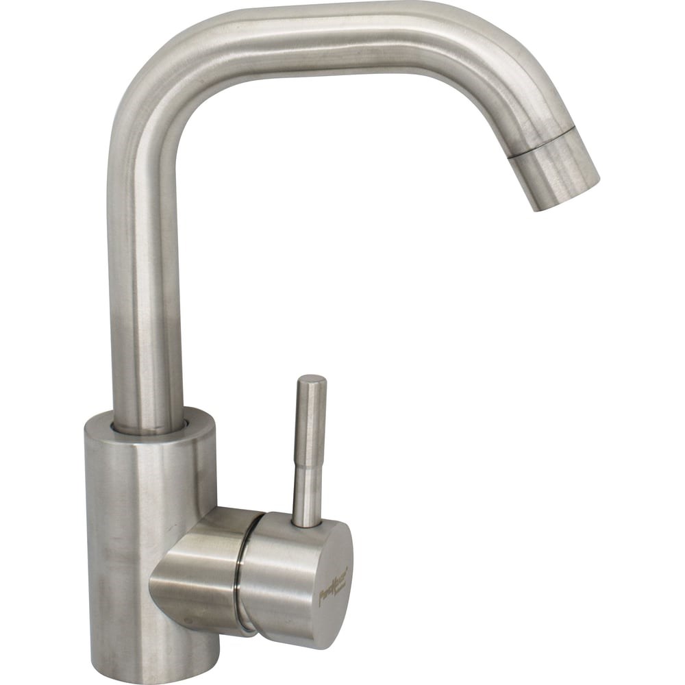 Смеситель позволяет регулировать поток воды и получать воду требуемой температуры при смешивании горячей и холодной воды, изготовлен из нержавеющей стали. Смеситель однорычажный, крепление гайка, картридж 40 мм.