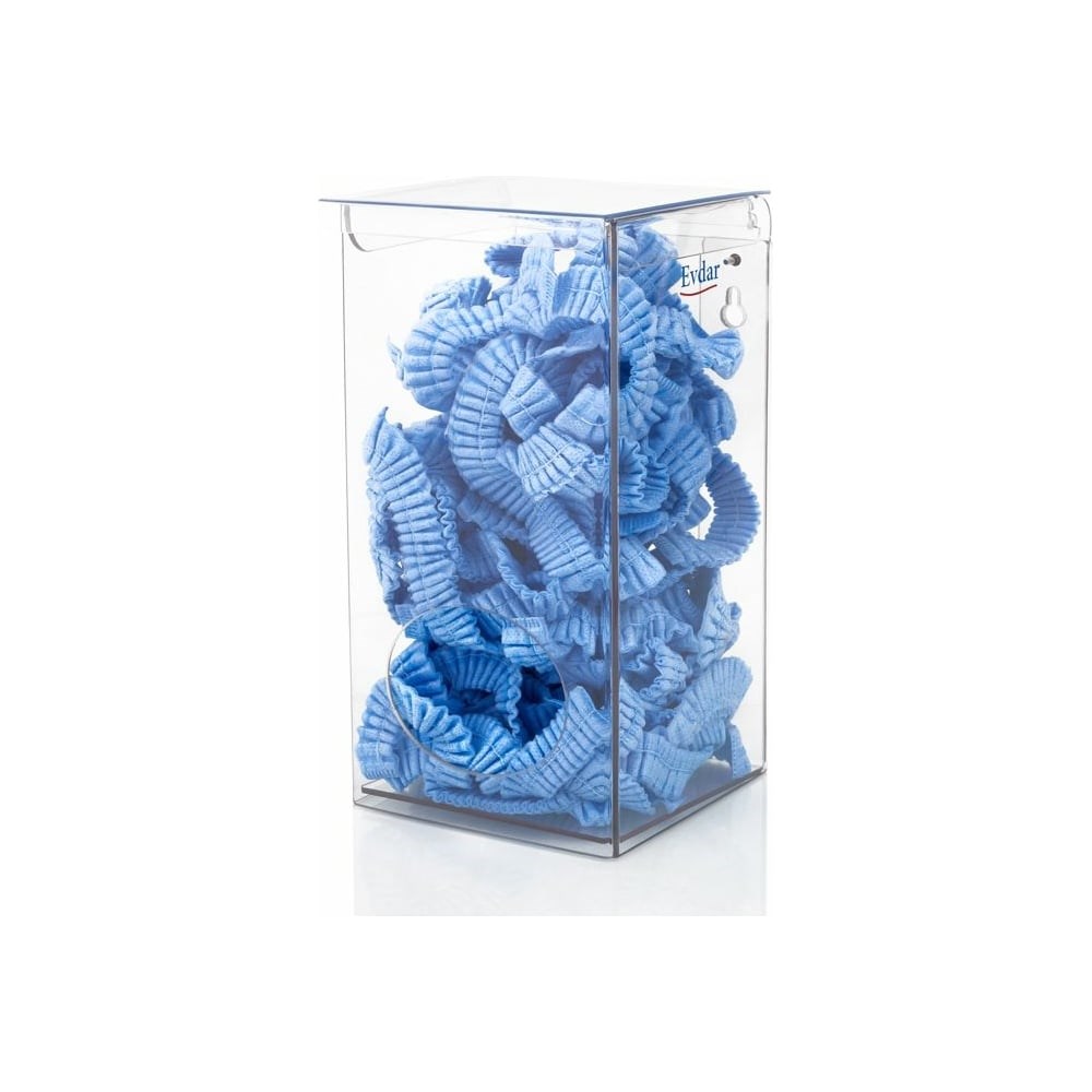 Диспенсер для одноразовых СИЗ Evdar односекционный D1020 изготовлен из ударопрочного прозрачного пластика - поликарбонат.  В отличие от оргстекла: устойчив к любым спиртосодержащим дезинфицирующим жидкостям, со временем не трескается и не становится мутным. по мере эксплуатации не наэлектризовывается.
