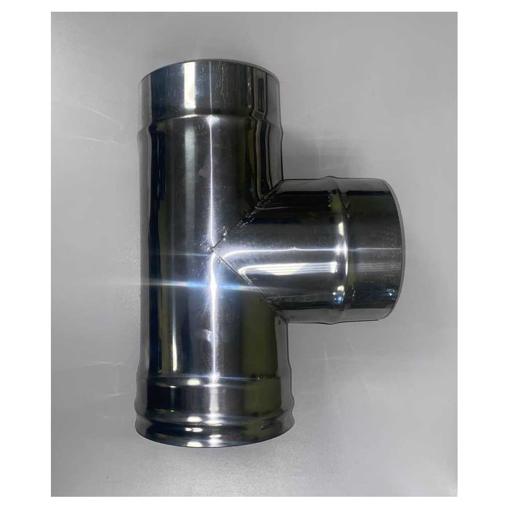 Тройник Ø150 90°; Толщина металла: 0.8 мм; Марка стали: AISI 430 (Режим-сухой без конденсата); Монтаж и эксплуатация дымохода производится согласно СП 7.13130.2013.