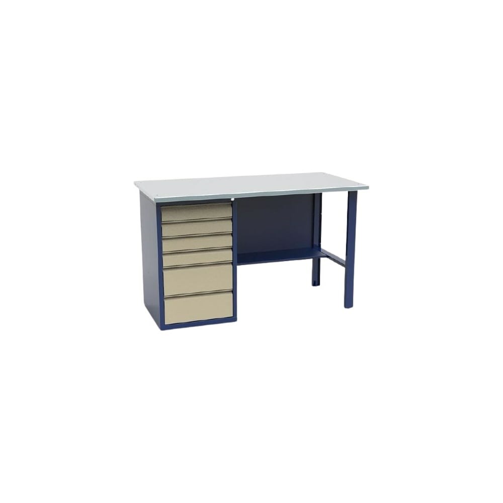 Однотумбовый верстак Святогор СВ-1Т.06.00.14 обеспечивает рабочее пространство для проведения слесарных операций в производственных цехах и мастерских. Модель изготавливается из прочного металла, что гарантирует надежность и долгий срок эксплуатации. Столешница покрыта листом оцинкованного металла и выдерживает большие рабочие нагрузки. Верстак оснащен вместительной тумбой с шестью выдвижными ящиками, которые предназначены для хранения заготовок и инструмента.
