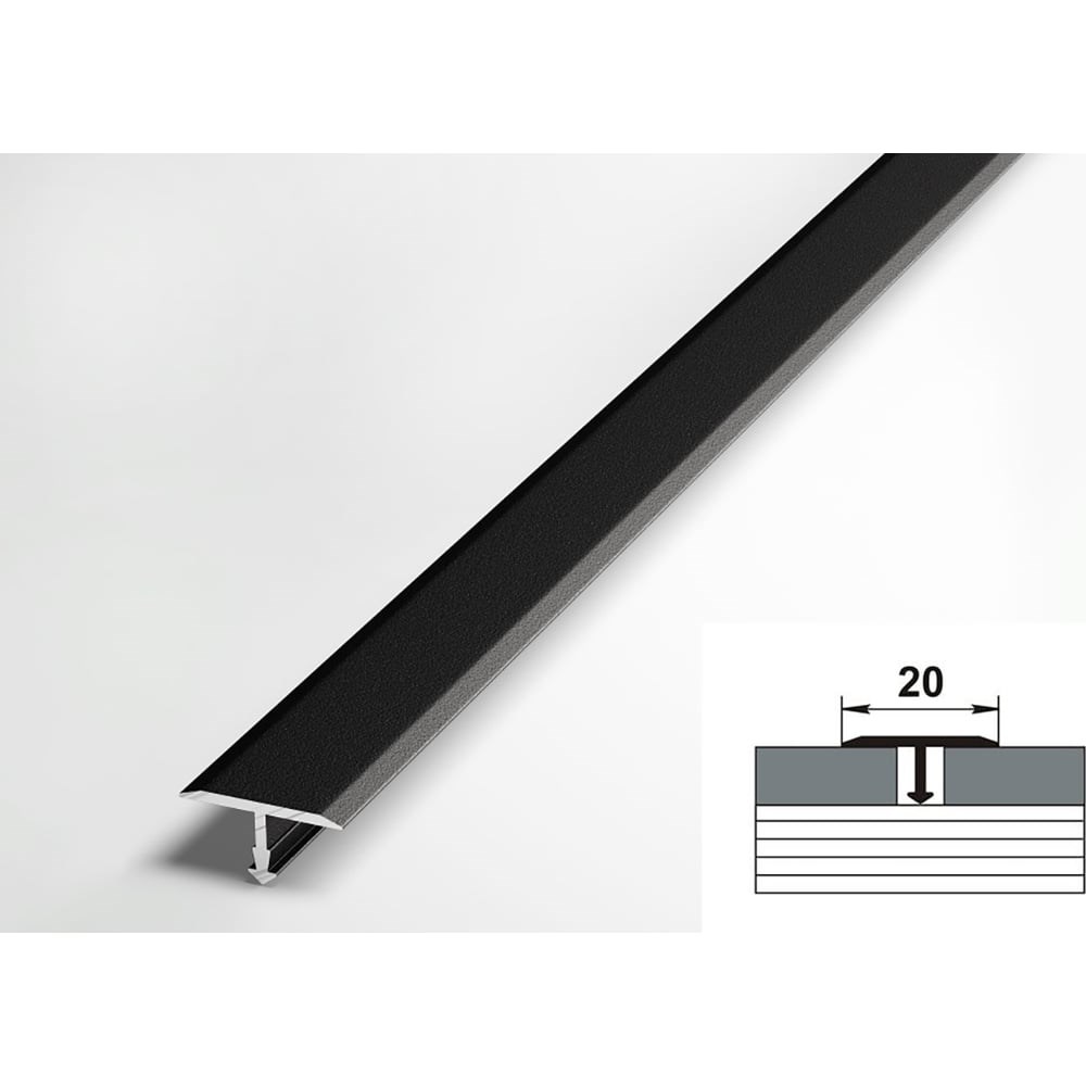 Порог алюминиевый Лука 20 мм, 2.7 м, Т-образный, Черный УТ000038604 служит для стыковки двух напольных покрытий. Длина 2700 мм, ширина видимой части 20 мм. Соединяет два напольных покрытия одного уровня не менее 8 мм толщиной, такие как плитка-ламинат, плитка-керамогранит и другие. Профиль практически в один уровень с полом, не окисляется, не подвергается механическому воздействию, надёжная система крепления. Не для разноуровневых поверхностей.