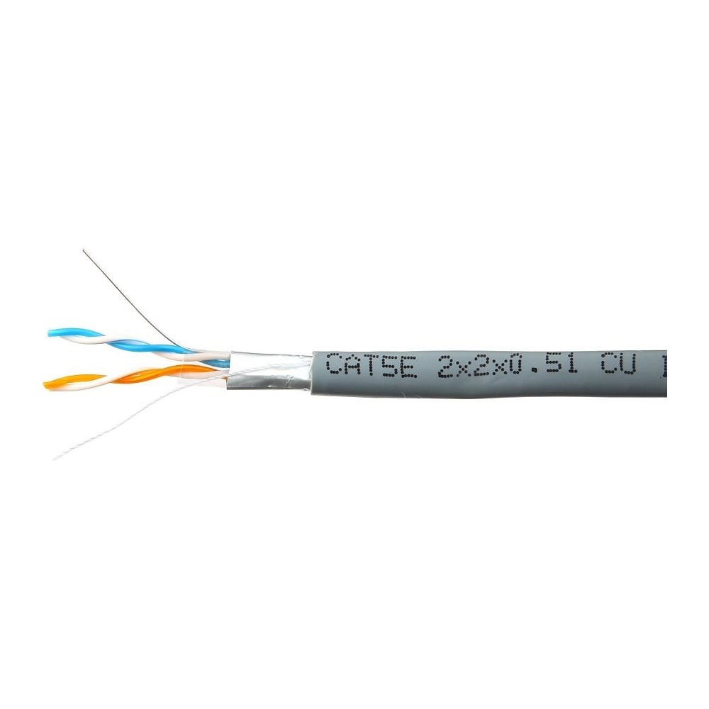 Кабель типа витая пара, экранированный, усовершенствованной 5-ой категории, предназначен для внутренней прокладки. Экран обеспечивает надежную защиту от внешних электромагнитных полей и уменьшает собственные наводки. Применяется в локальных сетях, входит в состав системы телекоммуникаций. Так же подходит для выполнения работ по построению центров обработки данных и структурированных кабельных сетей.Элементы конструкции: 1. Токопроводящая жила – однопроволочная, мягкая медная проволока диаметром 24AWG (0,51мм) 2. Изоляция проводника – полиэтилен 3. Разрывная нить – капрон 4. Экран – ламинированная алюминиевая фольга 5. Внешняя оболочка – поливинилхлоридТехнические характеристики: – температура эксплуатации от -15°С до +50°С Электрическое сопротивление цепи (двух последовательно соединенных токопроводящих жил рабочей пары) постоянному току при температуре 20°С - не более 18,1 Ом/100 м Эксплуатируется на частотах до 100 Мгц Минимальный радиус изгиба – 8 наружных диаметров кабеляДиаметр изоляции одной жилы 0,94-0,98мм Внешний диаметр кабеля 4,3 +-0,2мм